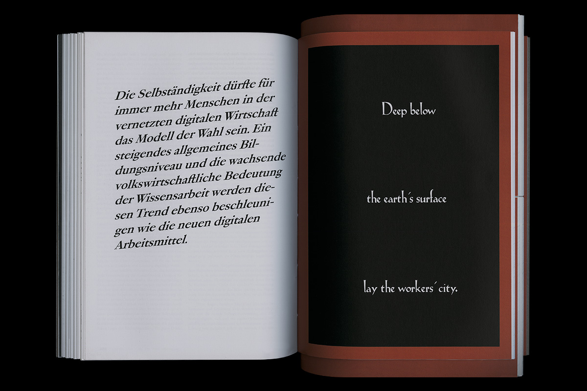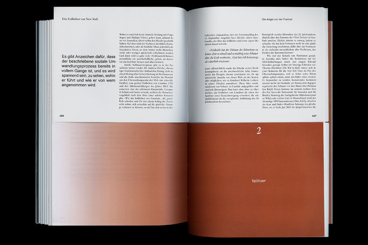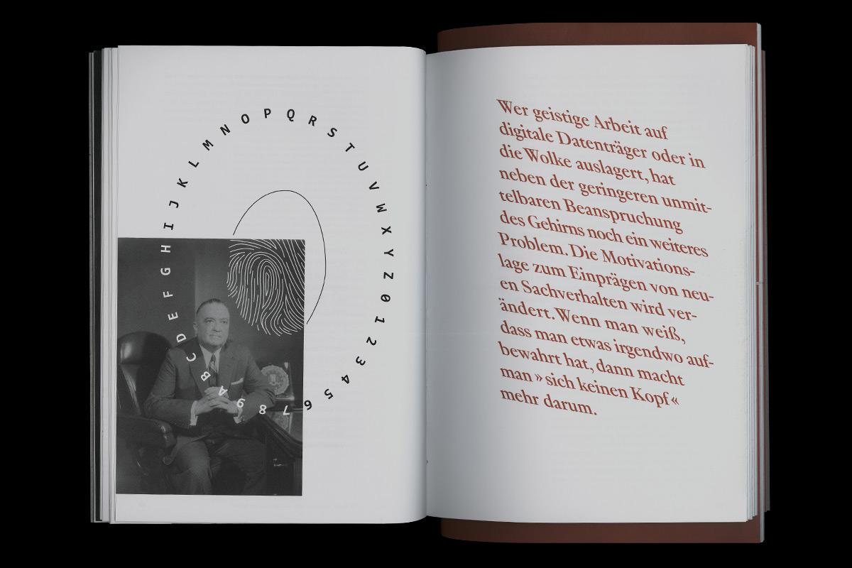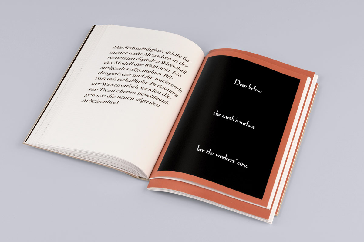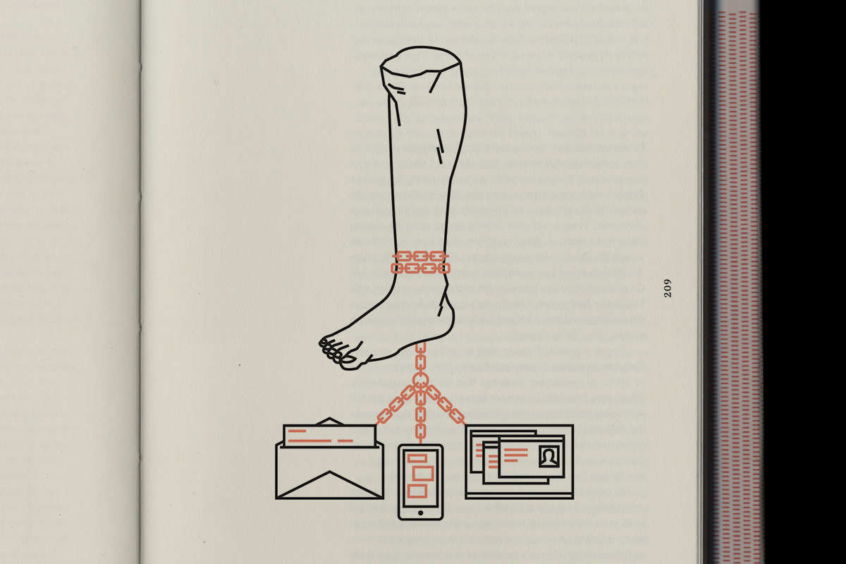 For my bachelor thesis I chose a sophisticated approach to designing the layout by splitting up the books structure and making use of playful typography and graphical information. The reader is guided through a kind of dual narrative about the pros and cons of the digital media.