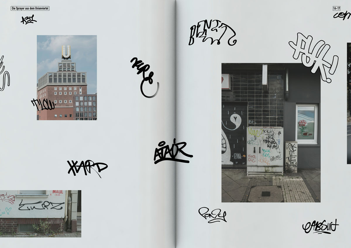 The self-published fanzine Im Wandel was made during a two-day-workshop by my dear friends from NEU Designbüro in Dortmund. It focuses on the people and varying observations made in the Unionviertel.