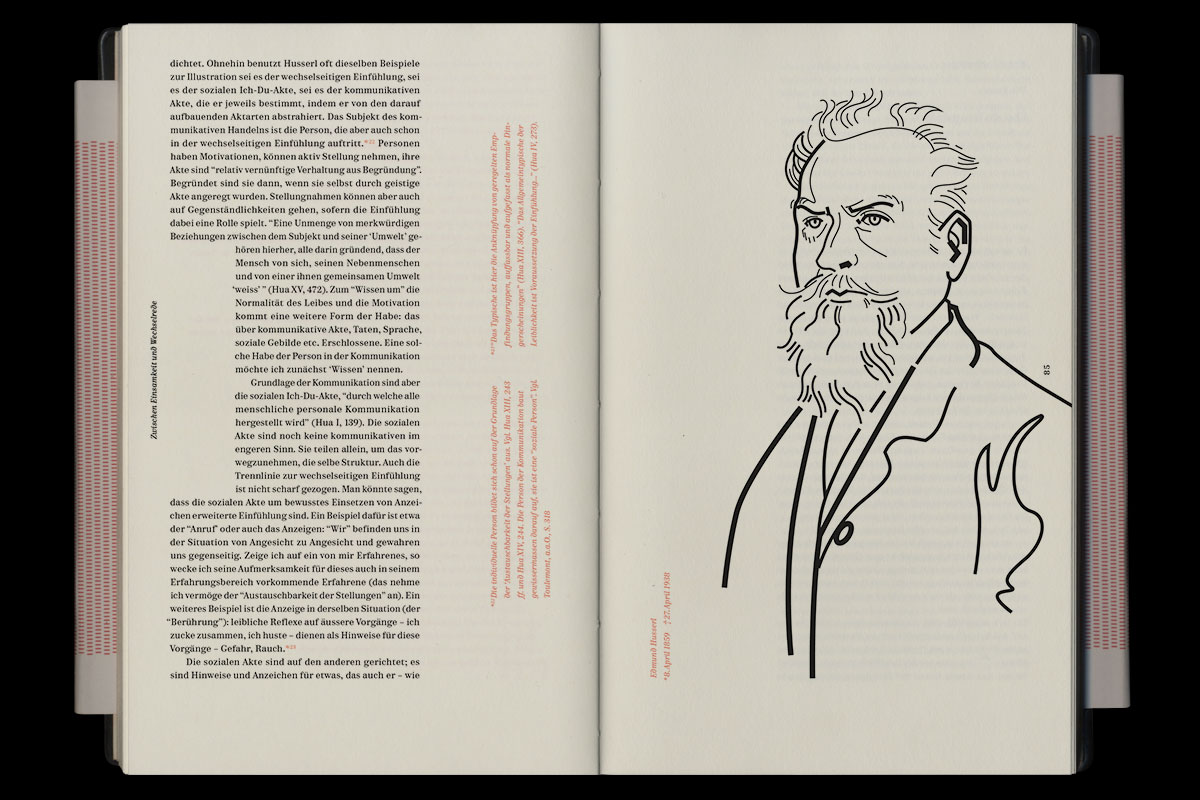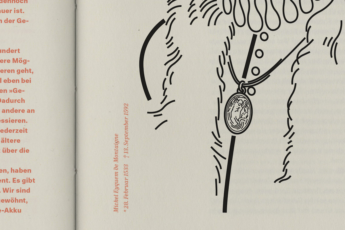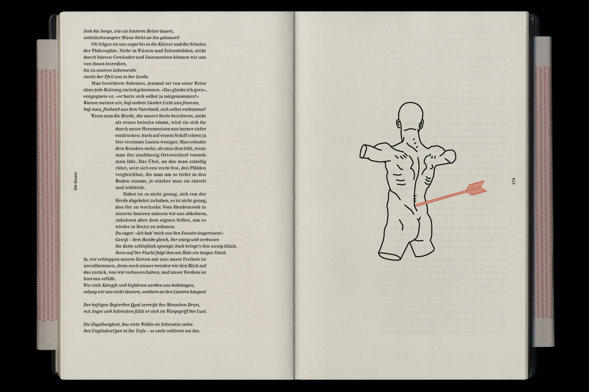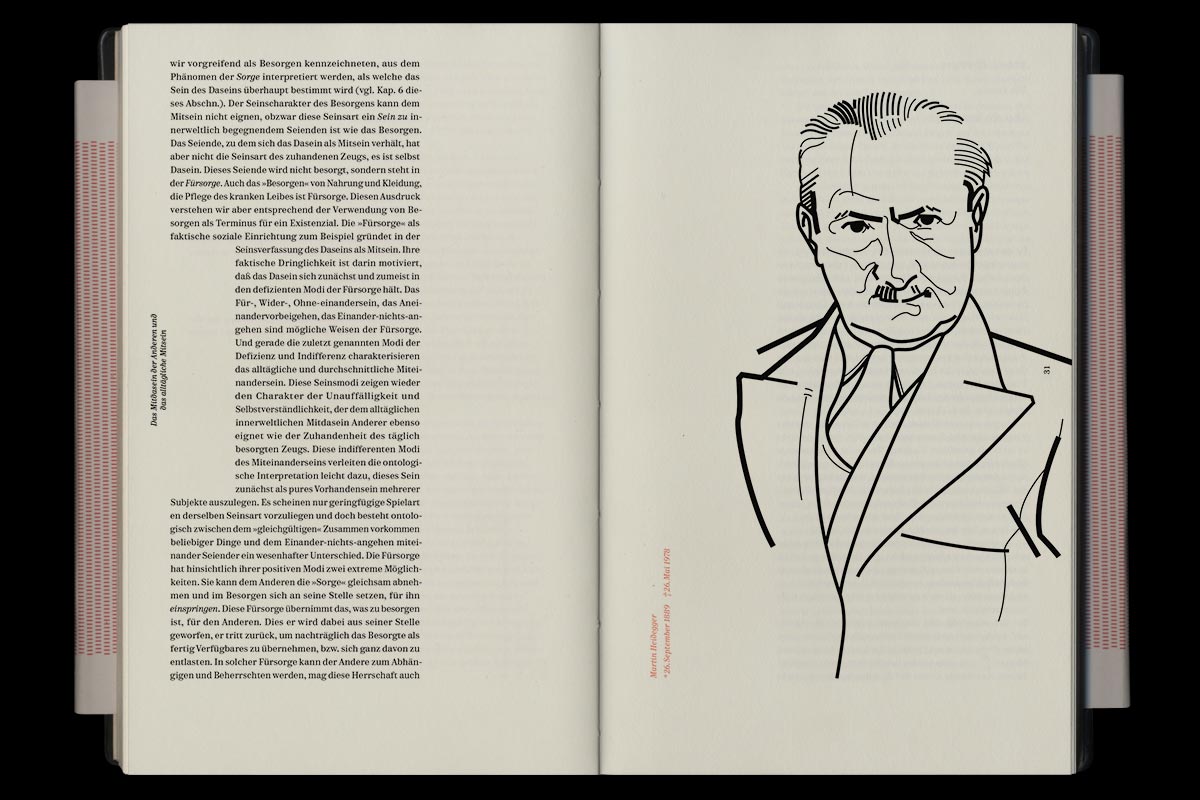 Das Alleinsein was created during my seventh semester studying at MSD / Münster School of Design as part of a self-initiated Buchkunst project. The binding is sewn by hand and the cover features the laser-engraved images of Friedrich Nietzsche, Henry David Thoreau and Arthur Schopenhauer.