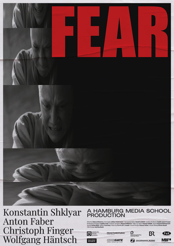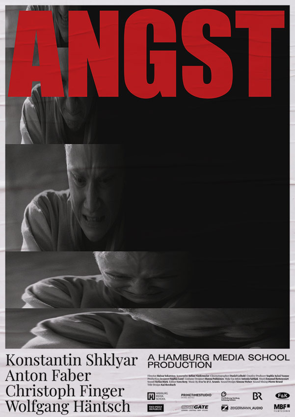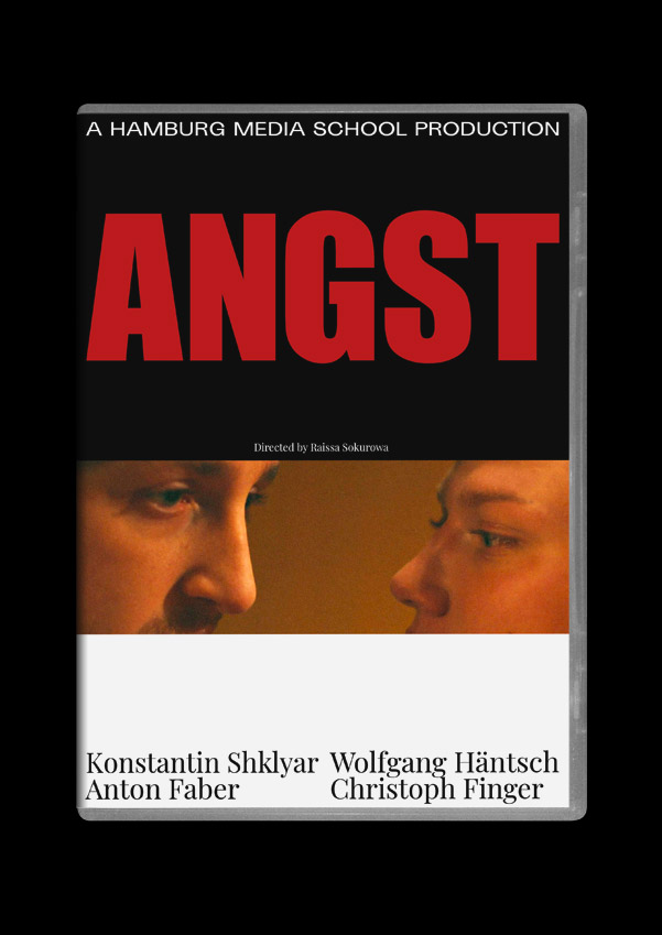 Movie poster and packaging for the short film ANGST (eng. FEAR) by Raissa Sokurowa. ANGST was shown during a large scale presentation by Cinemaxx in Hamburg at the end of winter semester 2017/18 alongside many other film projects of the Hamburg Media School.