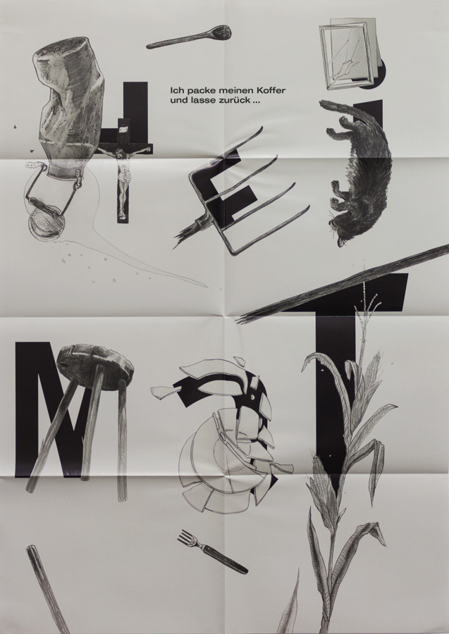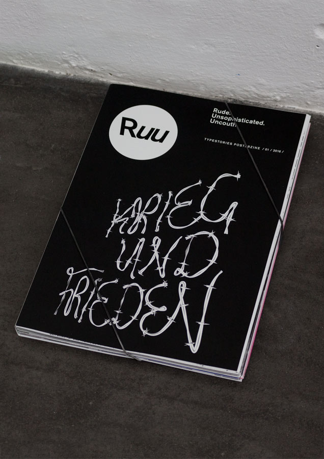 I was one of 17 participants involved in creating RUU the Typestories posterzine for MSD / Münster School of Design. The first issue of RUU resolves around "Krieg und Frieden" (engl. war and peace). By trying to imagine the hardships of expulsion or loss of someone's homeland I've illustrated elements of a war-torn countryside were I grew up on and mixed them with typography. The resulting posters where shown for two weeks at the Münster School of Design.