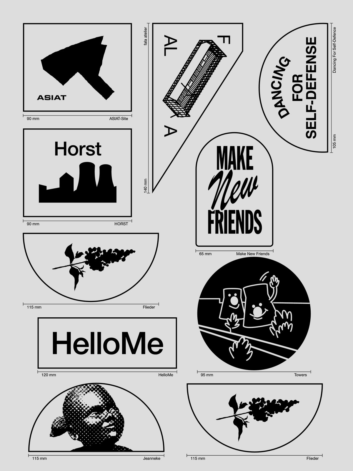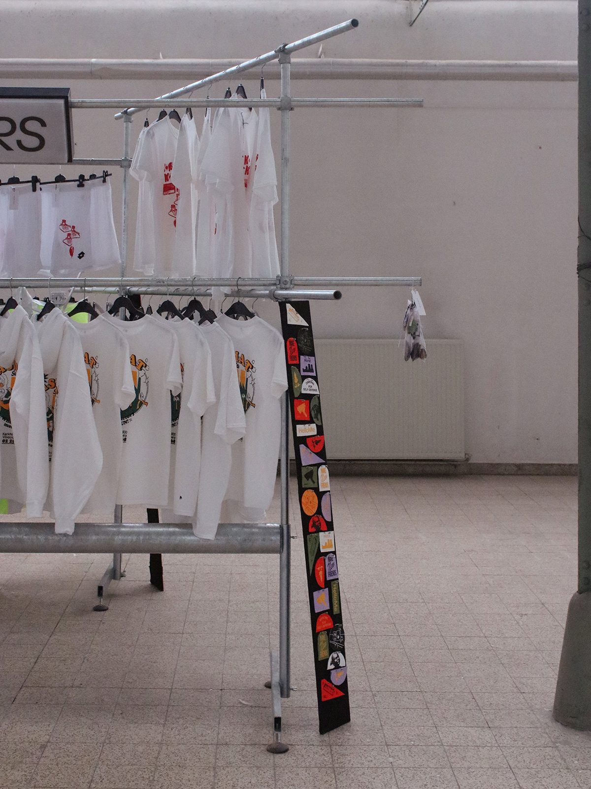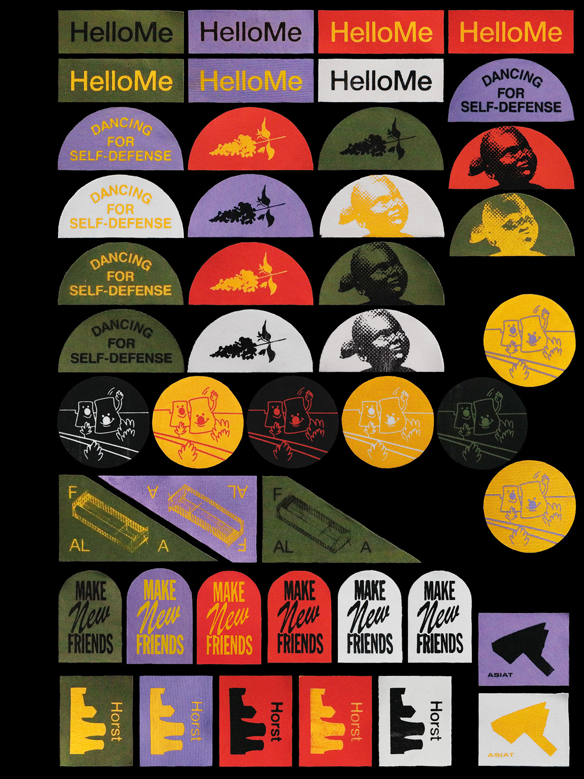 The Patches HM-081-HST-022 are screenprinted on leftover textiles and cut and glued by hand. They reference national souvenir patches and some of the landmarks of Belgium and Vilvoorde.